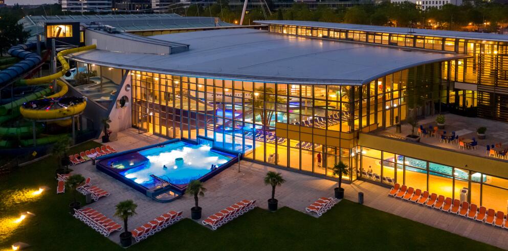 Tauche ein in eine Welt voller Action, Entspannung und WOW-Momente – das Europabad Karlsruhe macht deinen Tag zum Erlebnis, egal ob du Adrenalin suchst oder einfach abschalten willst. Hier jagst du im freien Fall die AquaRocket hinunter, surfst im Sky Surfer im Stehen durch die Röhre oder gleitest entspannt durch warme Außenbecken unter freiem Himmel.