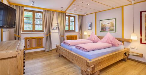 Ja, es können weitere Personen hinzugefügt werden. Das Doppelzimmer ist für maximal 3 Personen ausgelegt. Kinder bis einschließlich 6 Jahre übernachten für 25 € pro Nacht im Babybett, Kinder von 5 bis 6 Jahren zahlen 45 € pro Nacht im Zustellbett und Personen ab 7 Jahren 58 € pro Nacht im Zustellbett.