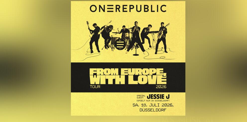 Erlebe OneRepublic live in Düsseldorf! Am 18. Juli 2026 rocken Ryan Tedder und seine Band im Rahmen ihrer From Europe With Love Tour 2026 die ARENA IM OPEN AIR PARK Düsseldorf – ein unvergessliches Sommer Open Air voller Emotionen, Energie und Weltklasse-Hits wie Counting Stars, Apologize und I Ain’t Worried!